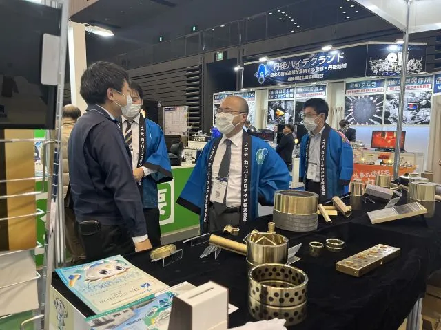 当社として福岡での展示会への出展は今回が初となり、新潟を拠点とした一貫生産体制による「鋳造から加工まで」の高い技術力をアピールしました。九州・西日本エリアへの進出にあたり、当社ブースには多数のお客様が訪れ、連続鋳造棒、地金、水部品、産業機械部品などの製品に深い関心をお寄せいただきました。特に、実際に製品を手に取っていただくことで、当社の魅力を直接お伝えすることができた点は大きな収穫といえます。