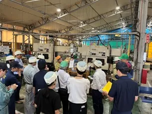 Jマテ.カッパープロダクツ株式会社(以下、Jマテ)は2025年7月26日、第四北越銀行主催の工場見学会をクビキ工場にて実施し、新潟県内7社26名が参加しました。