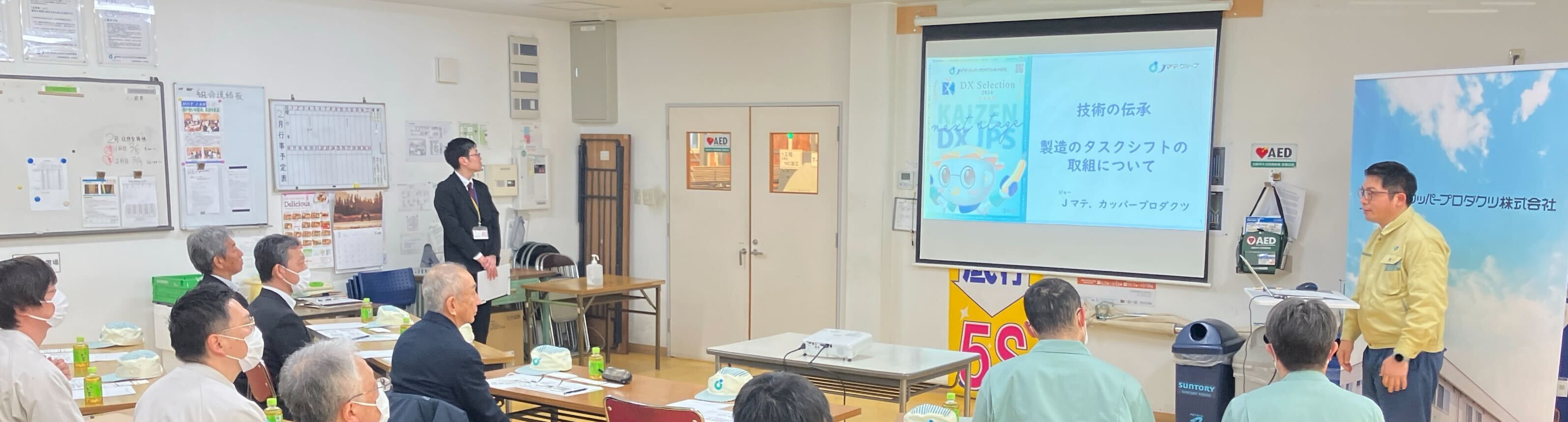 ・Jマテ.カッパープロダクツでは、産学官金連携による「地産地消のDX」推進と地域共創 として地域金融機関と連携した「DX宣言」の発信とコミュニティ形成 を推進しております。DXセレクション2024優良事例選出による地域への波及を目的に成功・失敗事例を隠さず公開する工場見学の実施しています。